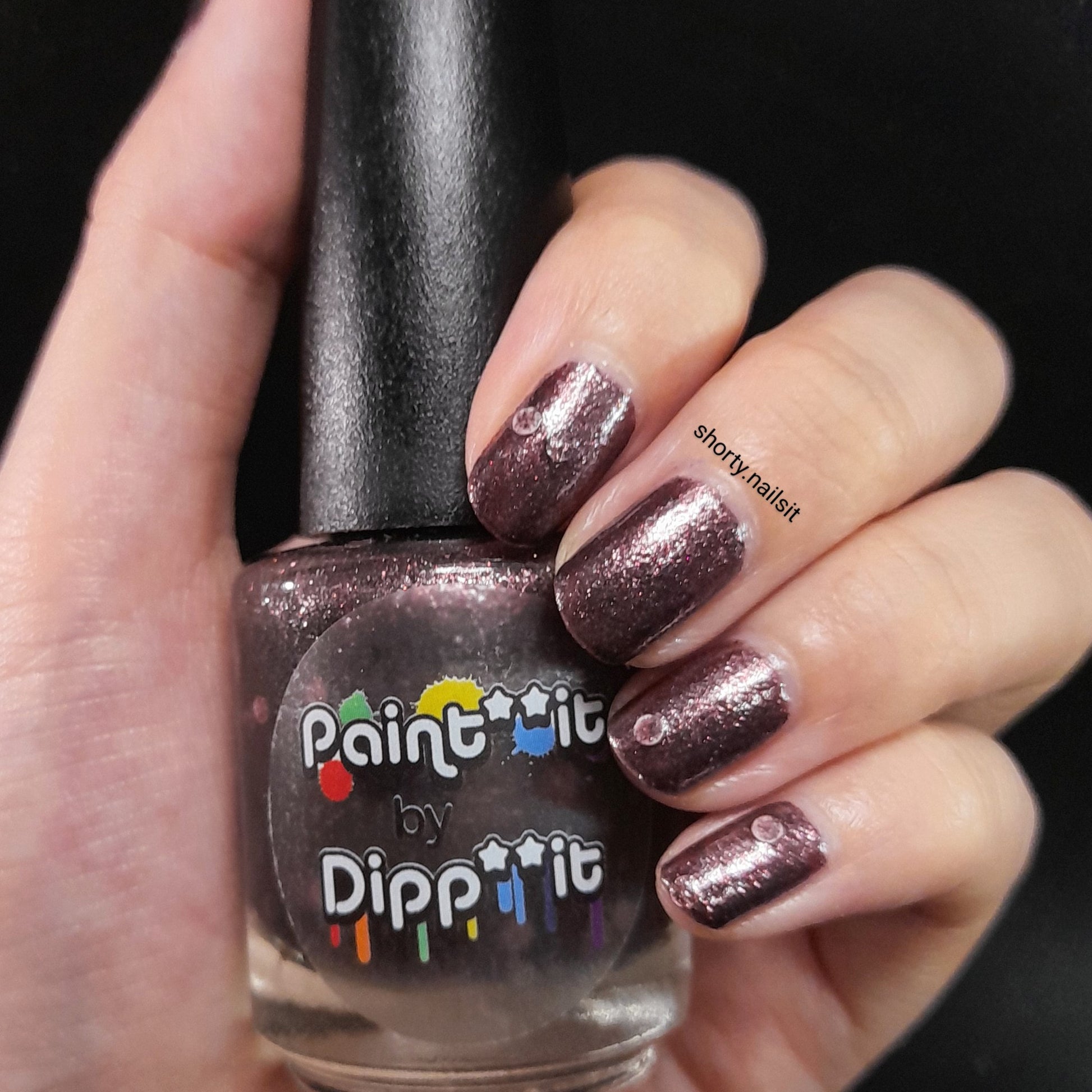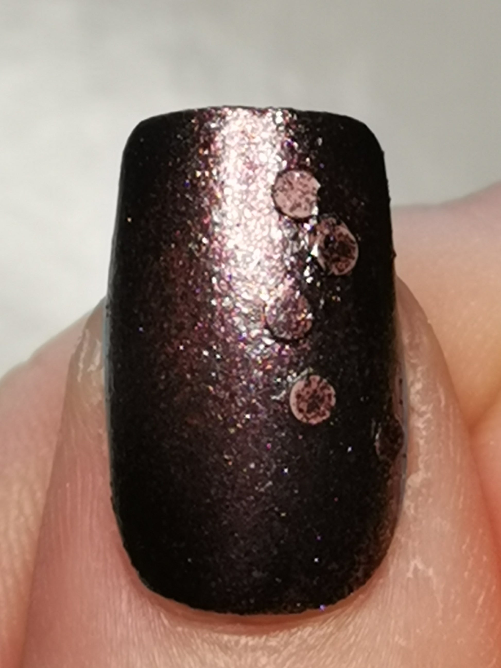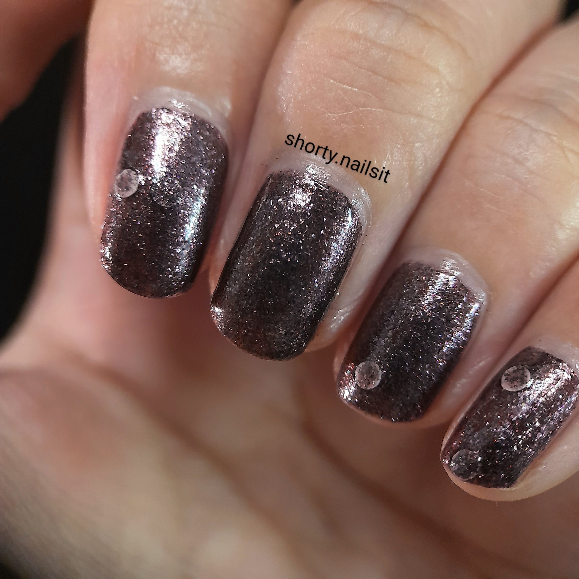 Blade of Justice is inspired by Katana and is a shiny blackened red polish filled with matte grey round glitter.