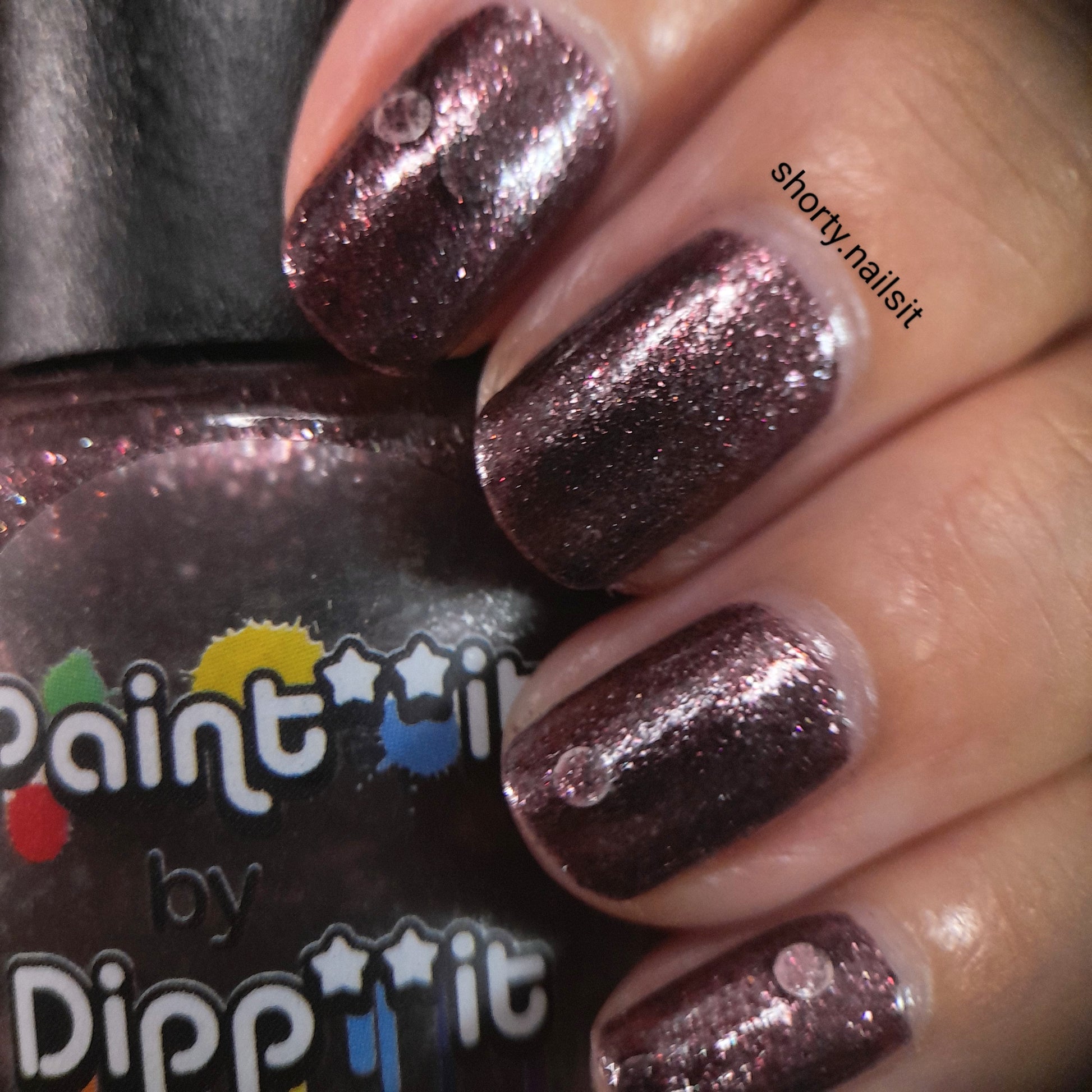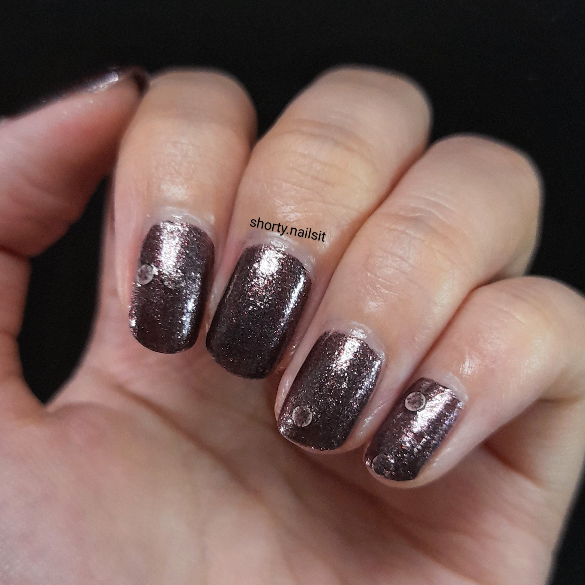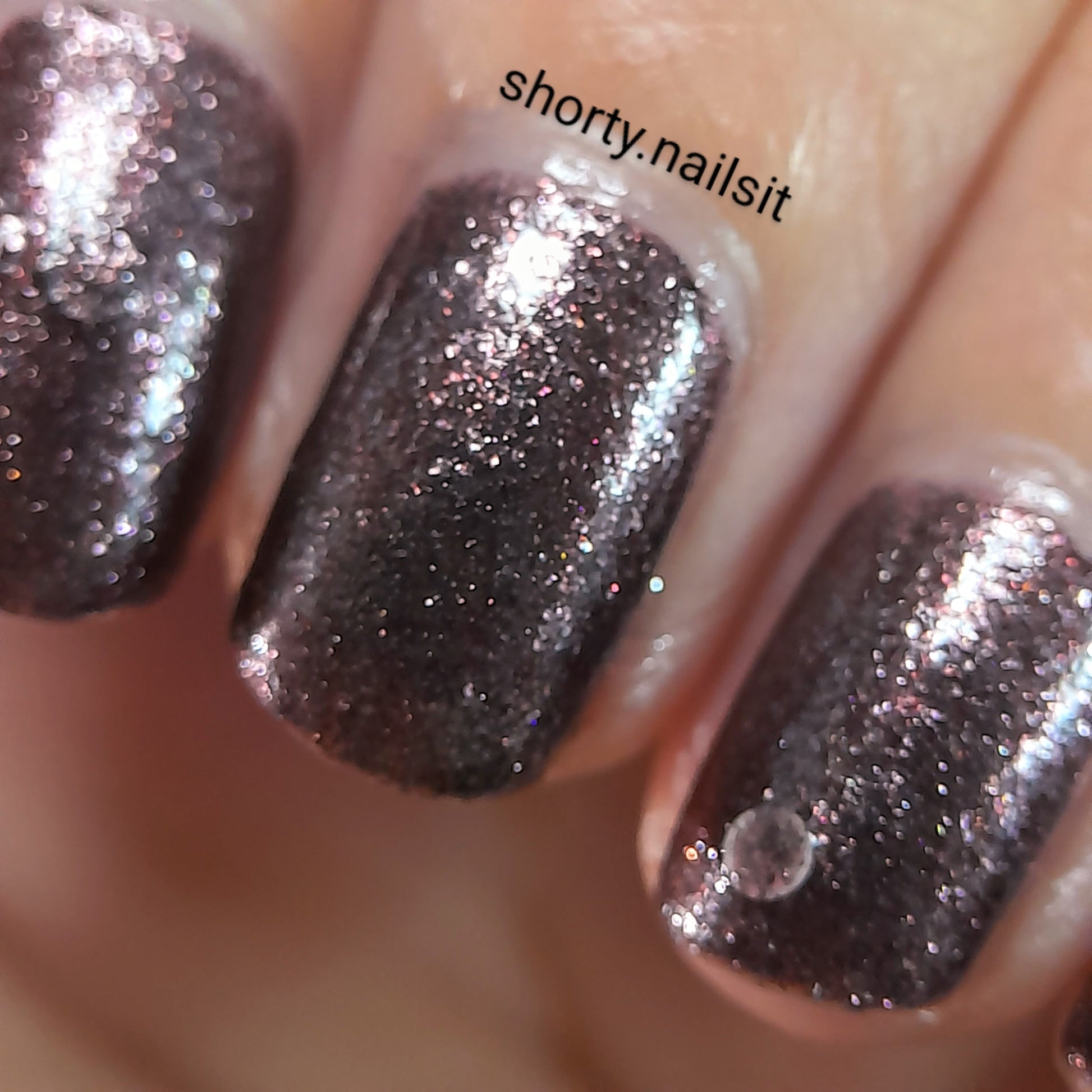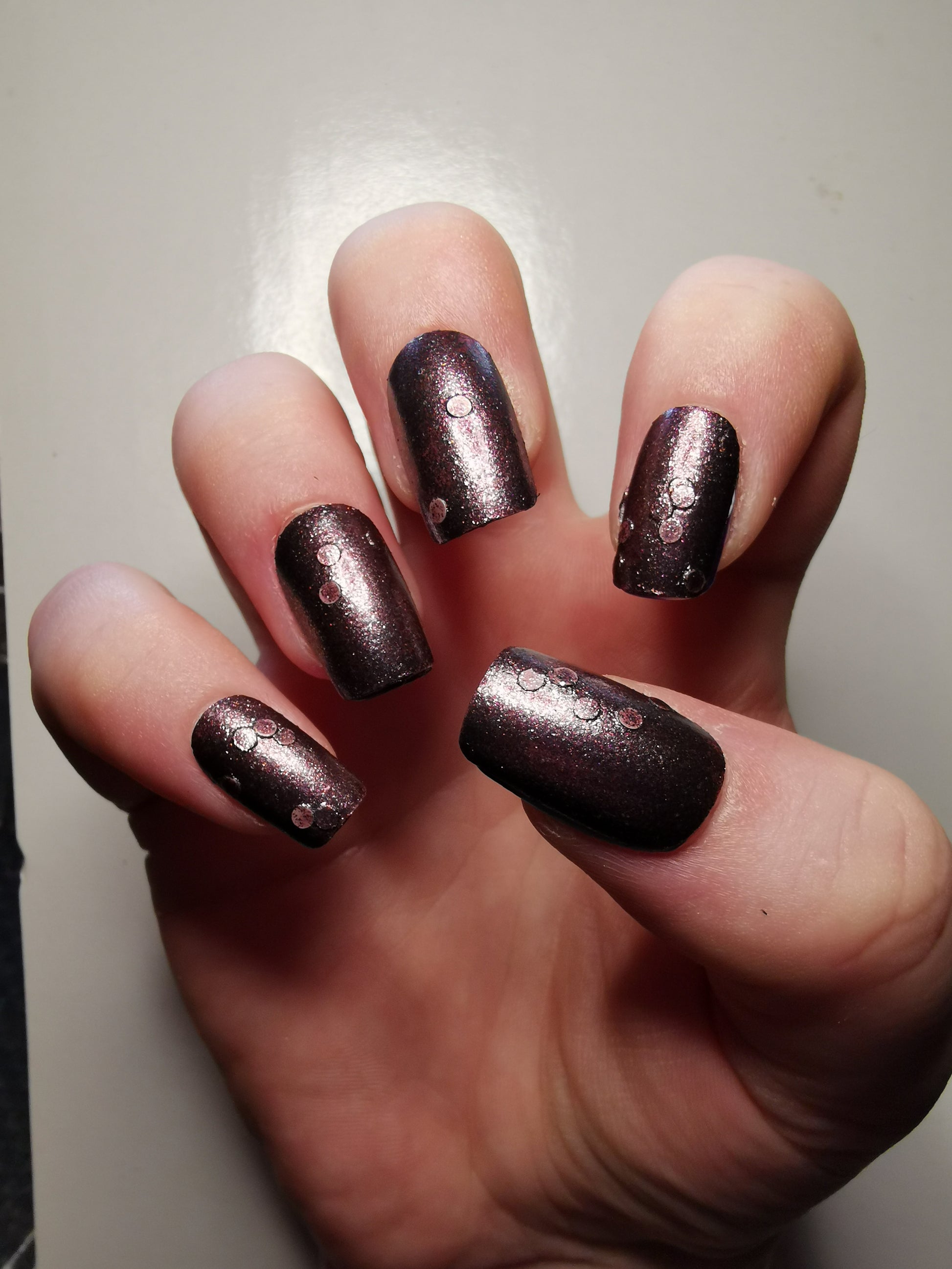 Blade of Justice is inspired by Katana and is a shiny blackened red polish filled with matte grey round glitter.