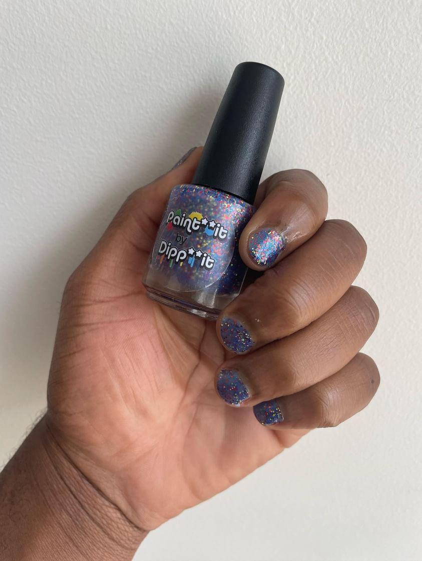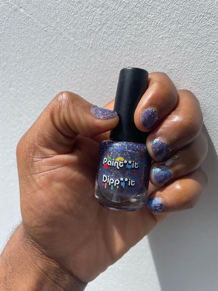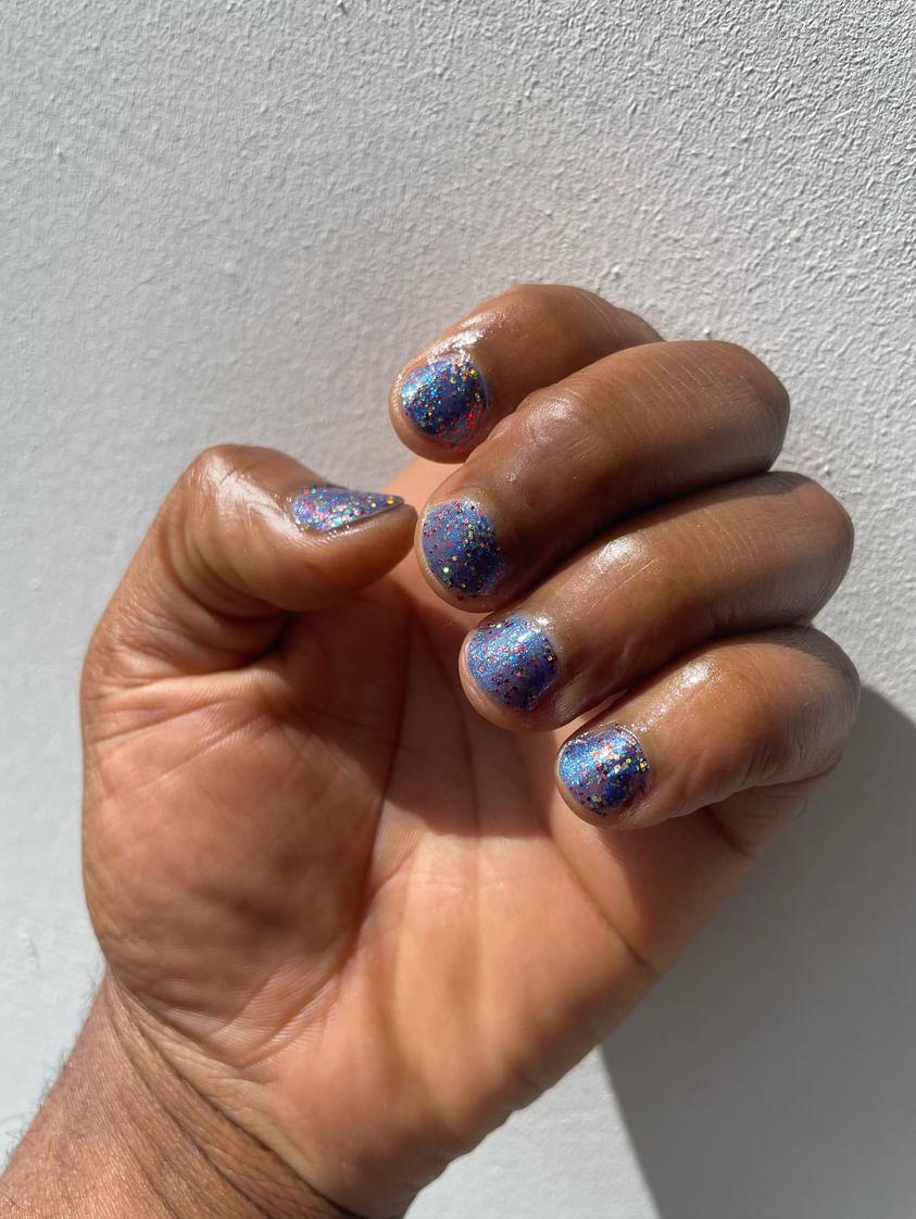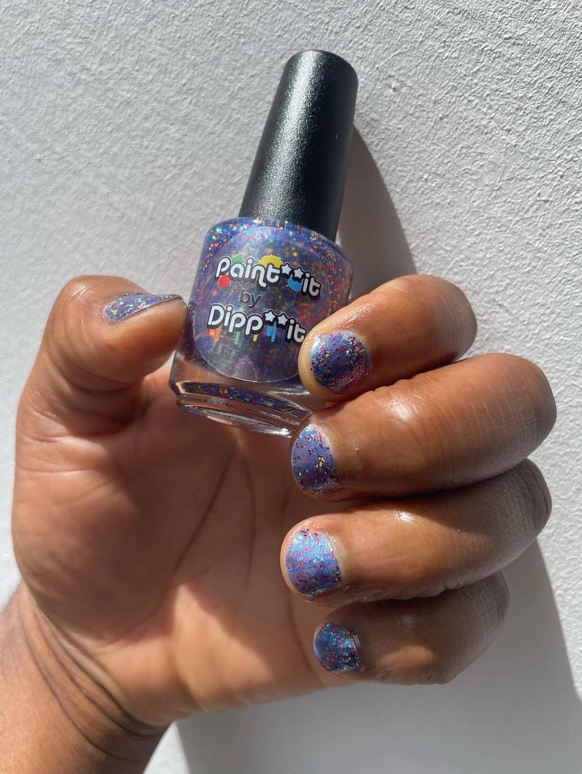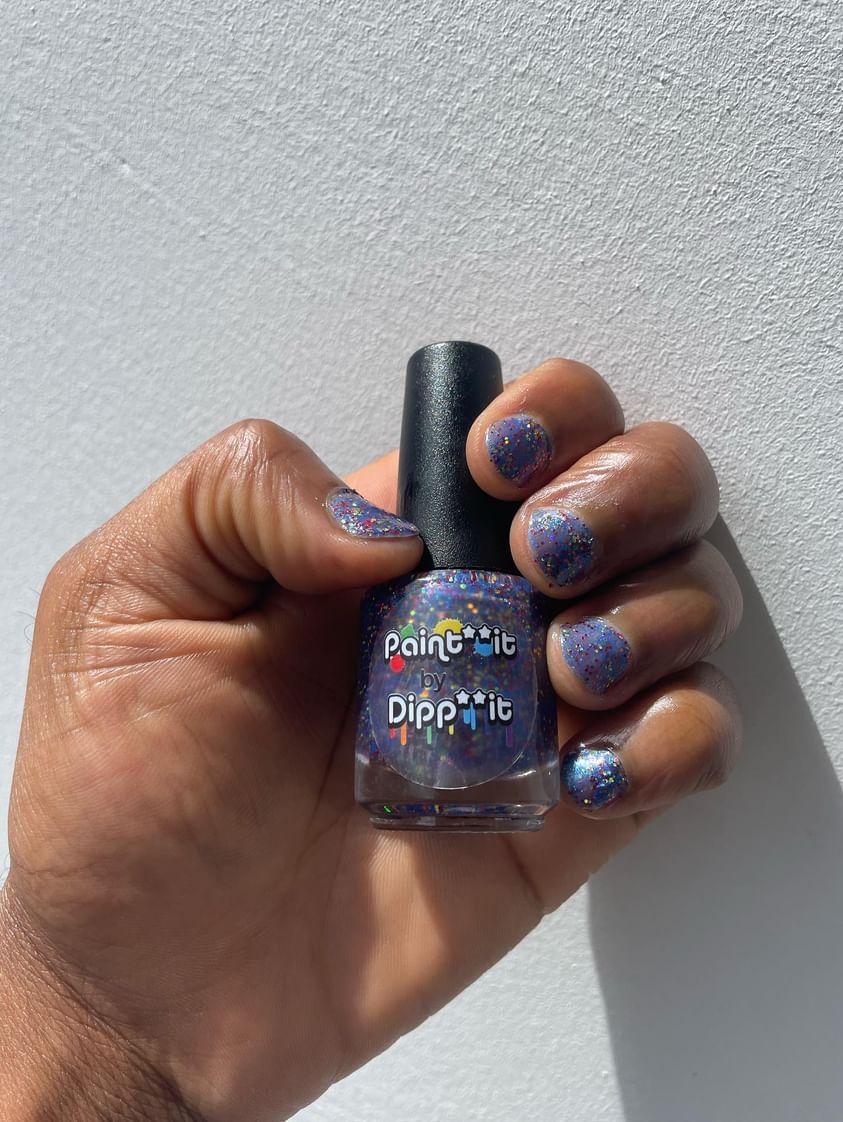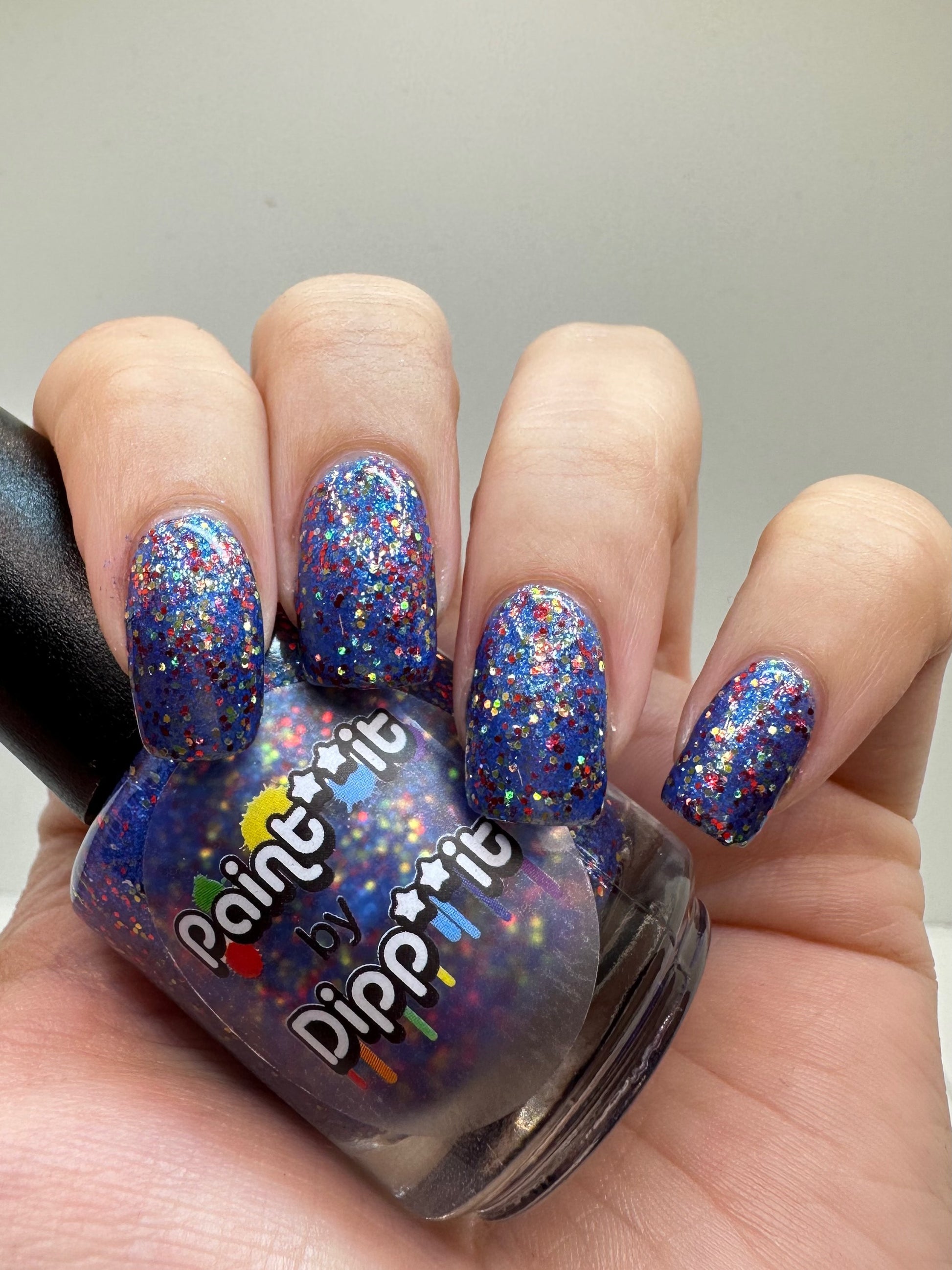 Kryptonian Kara is inspired by Supergirl and a blue microflake polish filled with yellow holographic glitter, and shiny red glitter.
