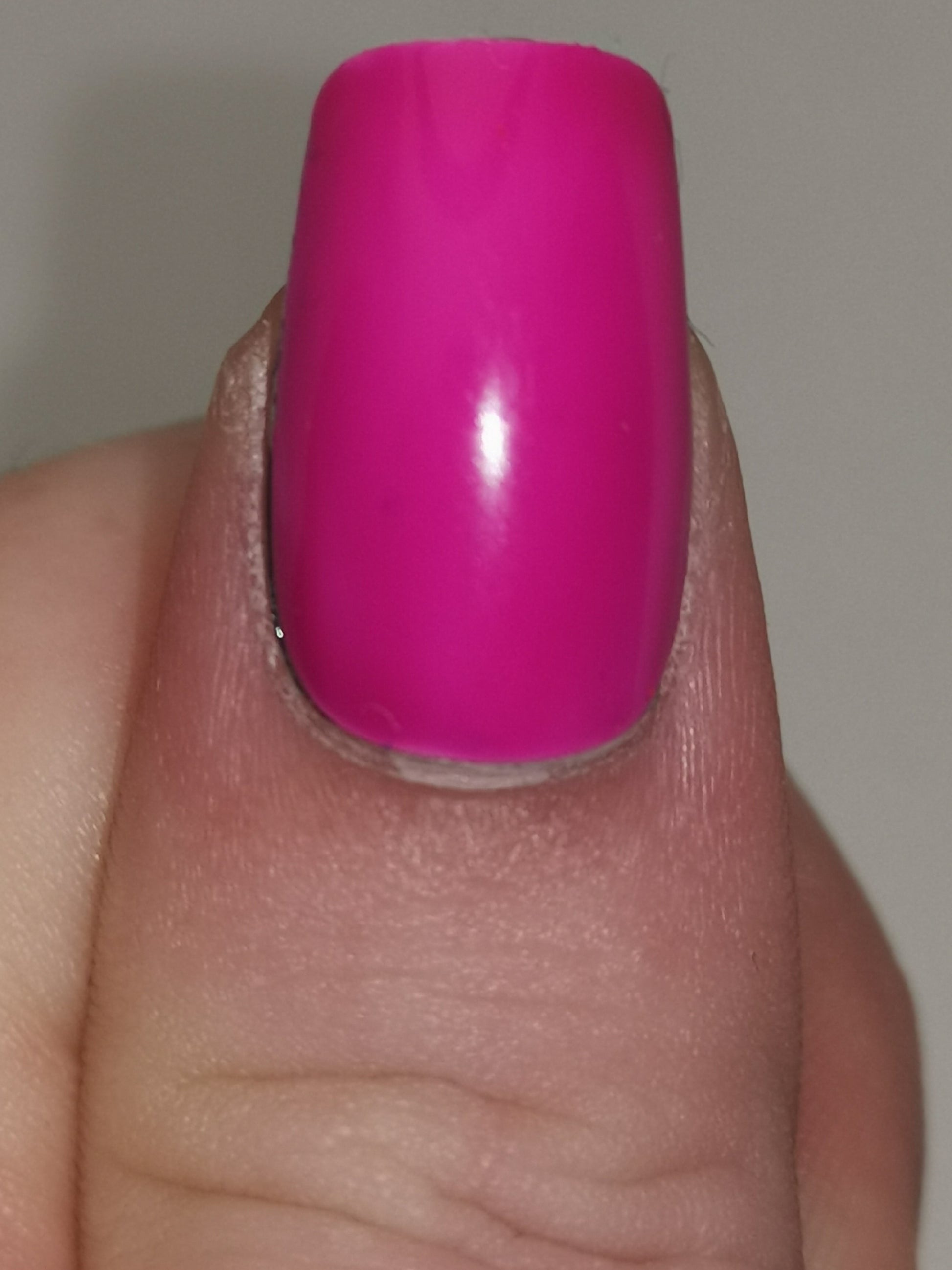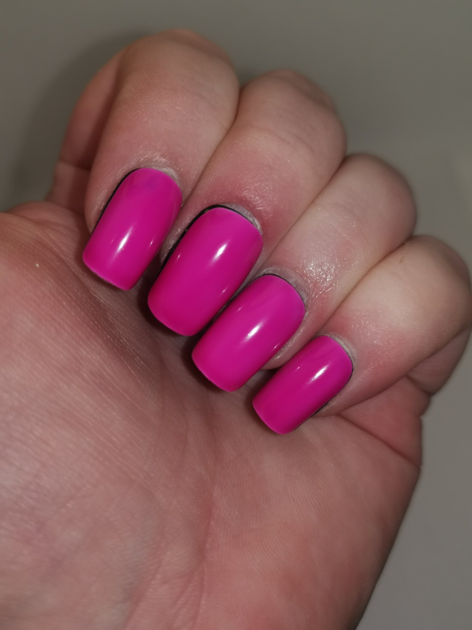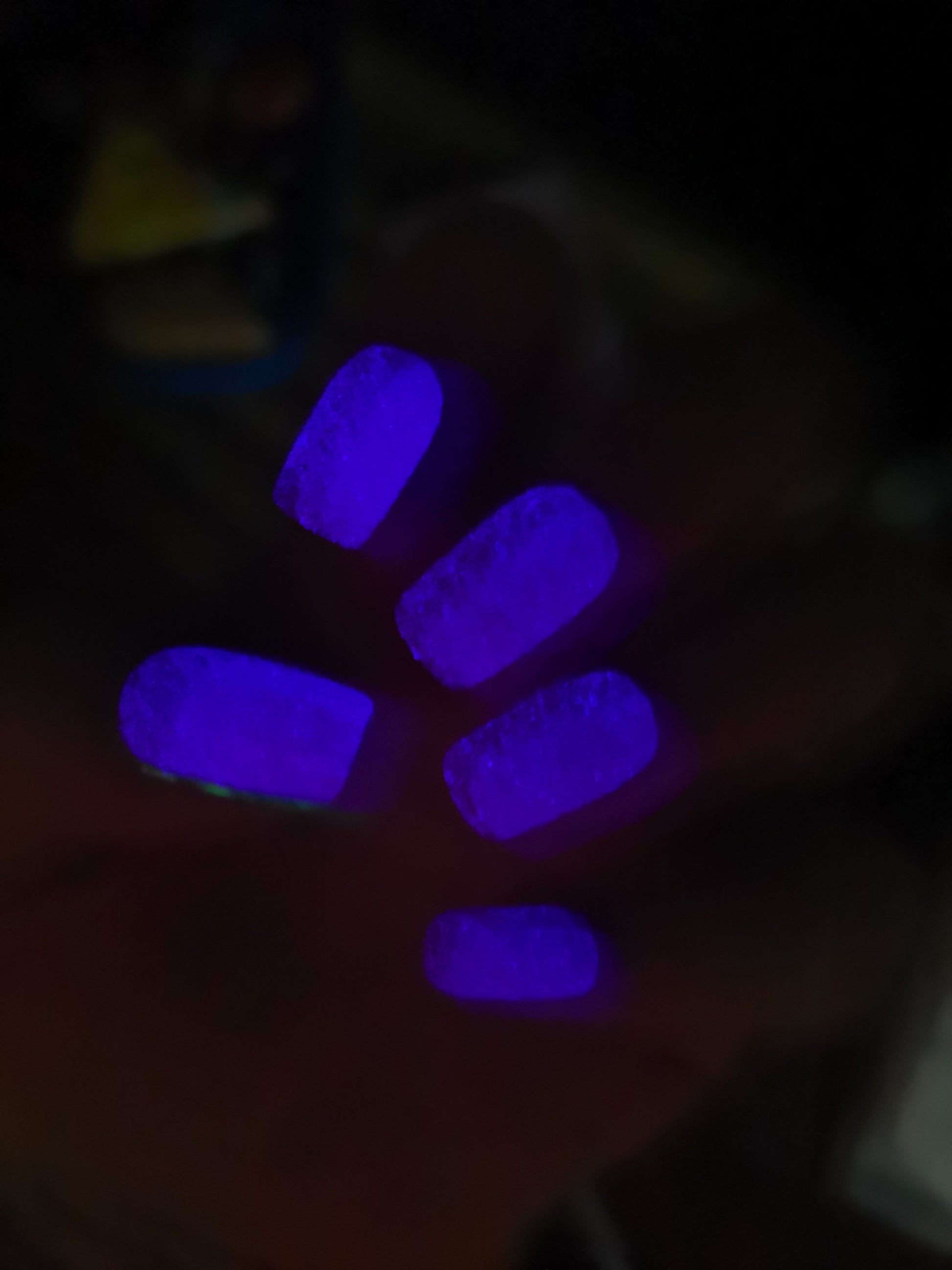 A pinkish purple jelly polish that glows pinkish blurple in the dark.
