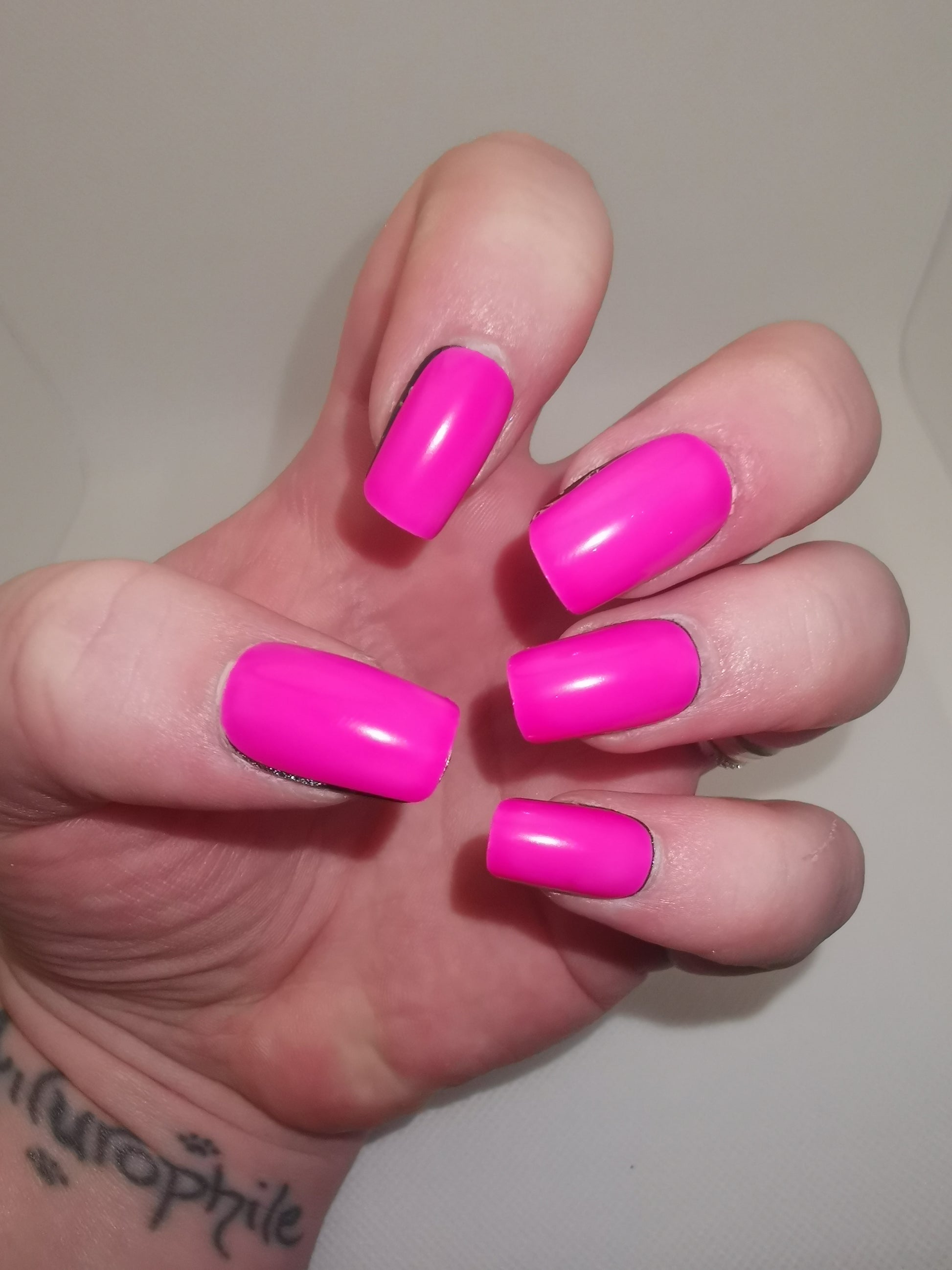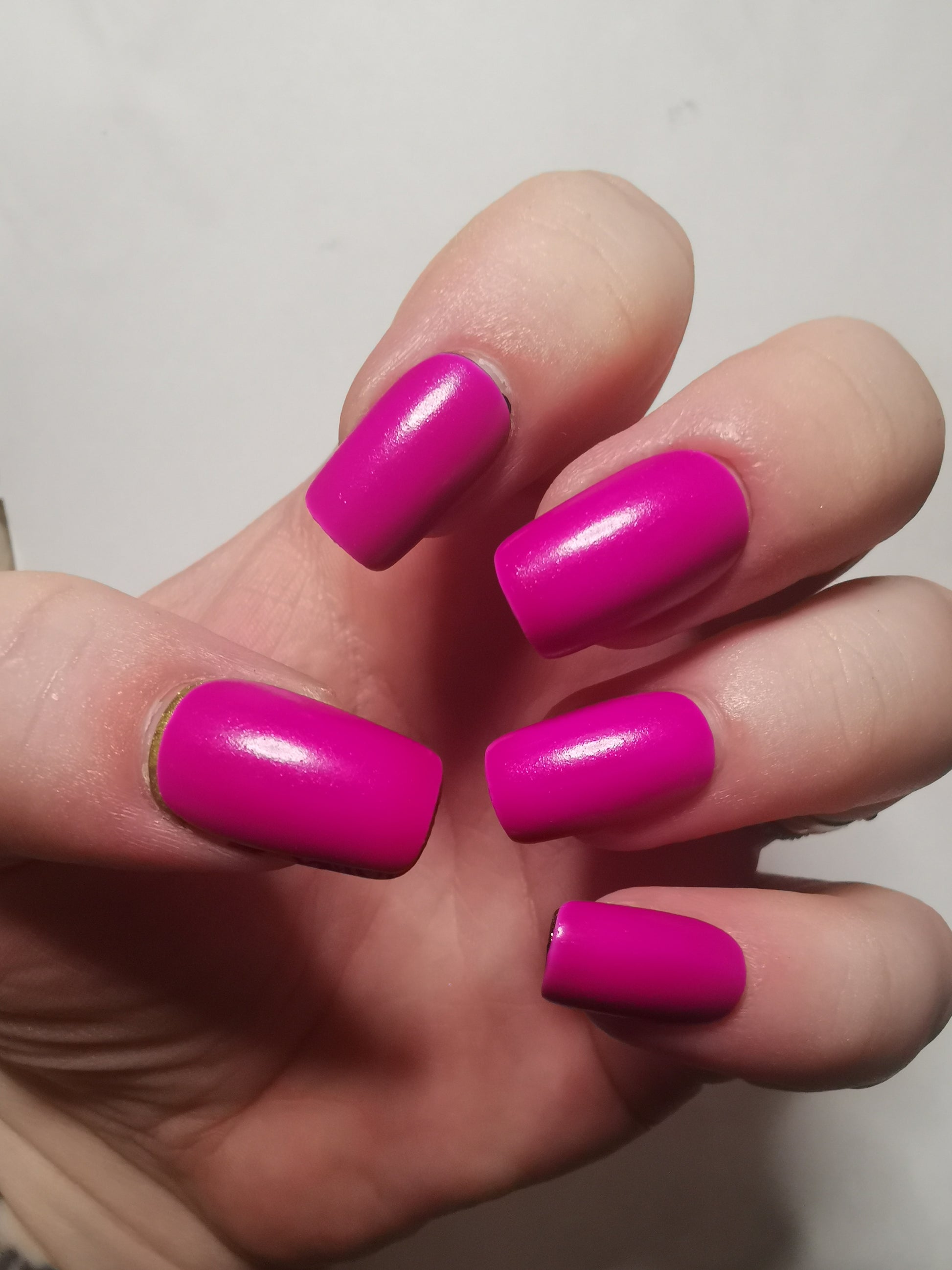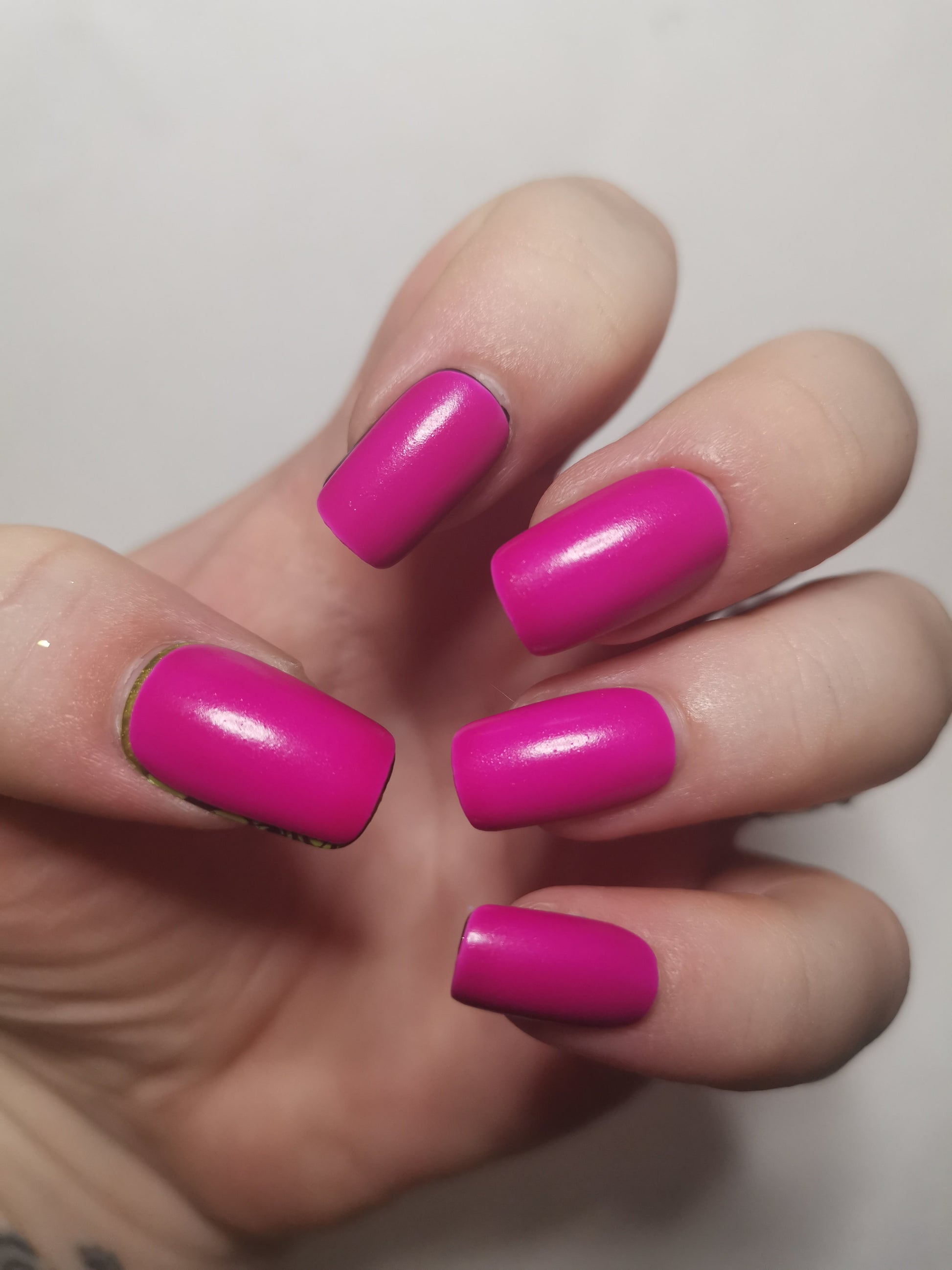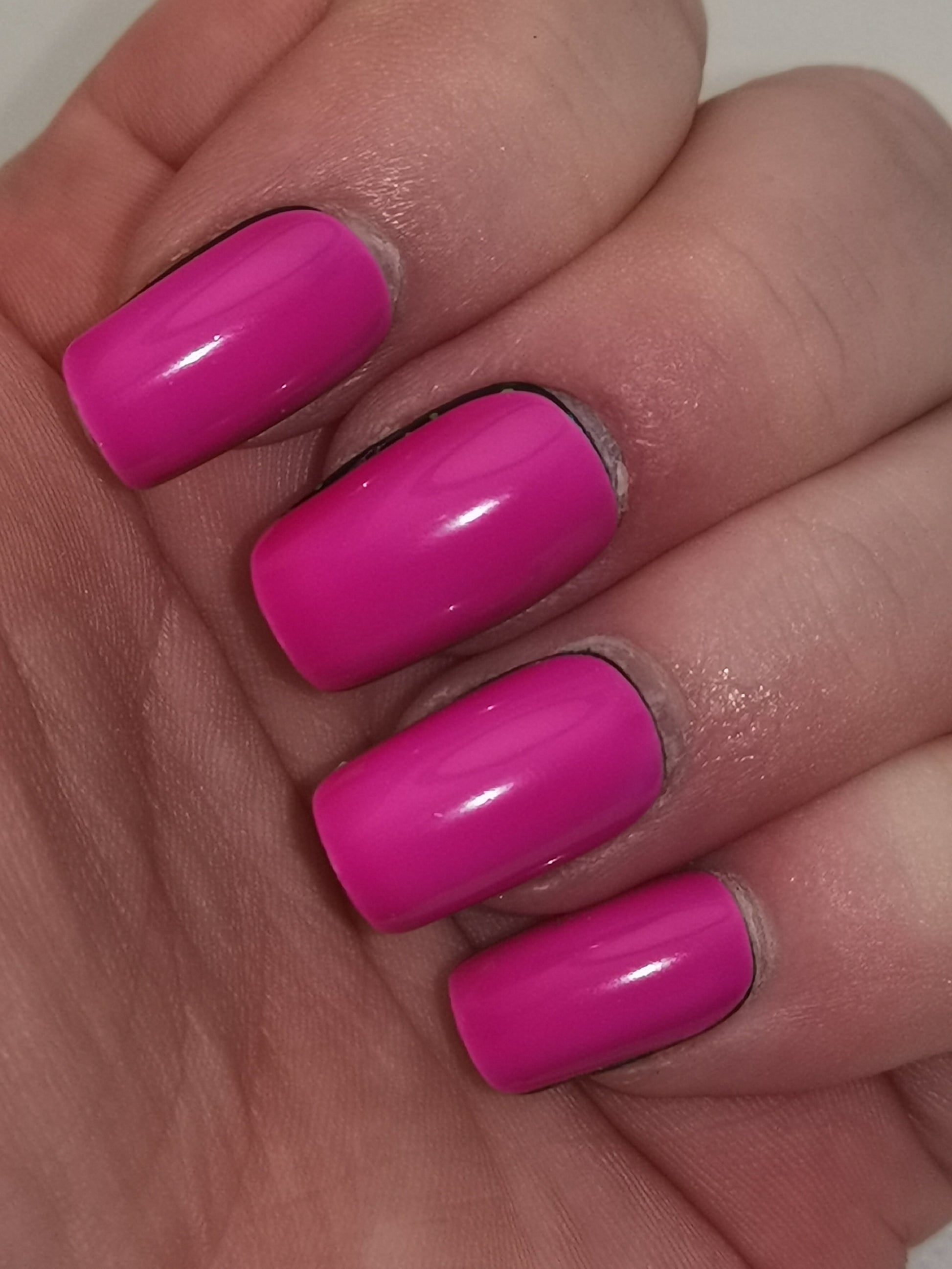 A pinkish purple jelly polish that glows pinkish blurple in the dark.
