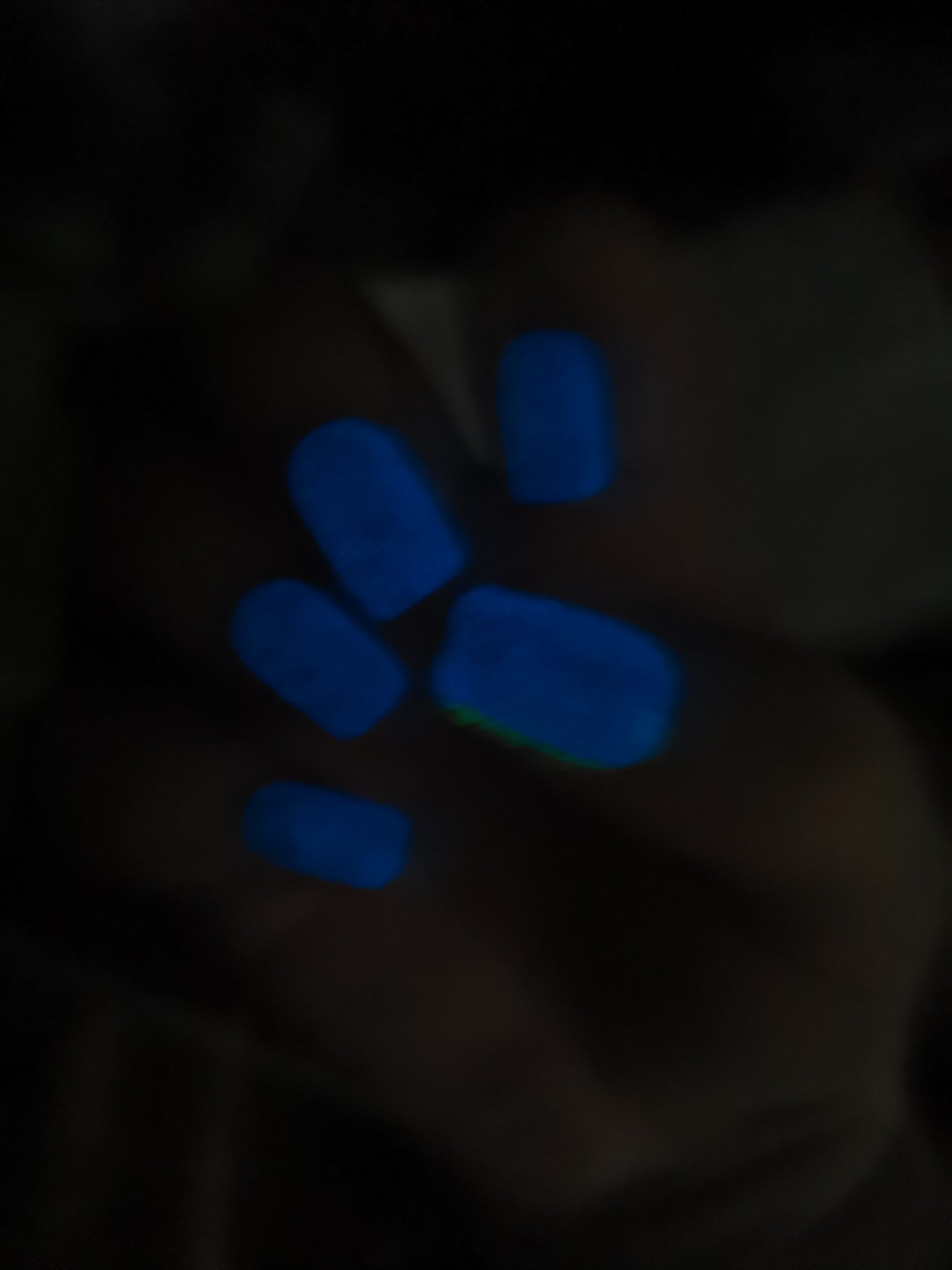 A bright blue jelly polish thats glows sky blue in the dark. For best glow results UV/sunlight is recommended.